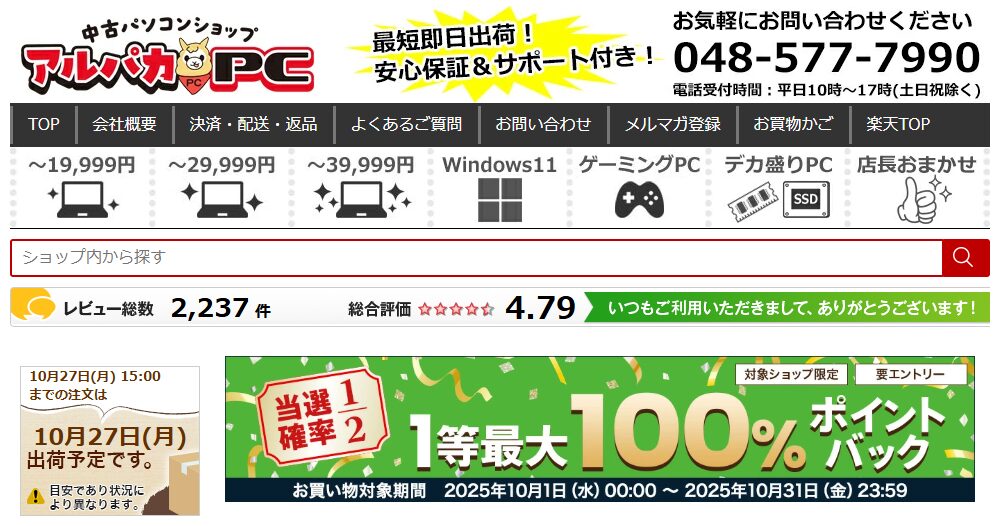 【楽天で★4.79】アルパカPCとはどんなショップ?